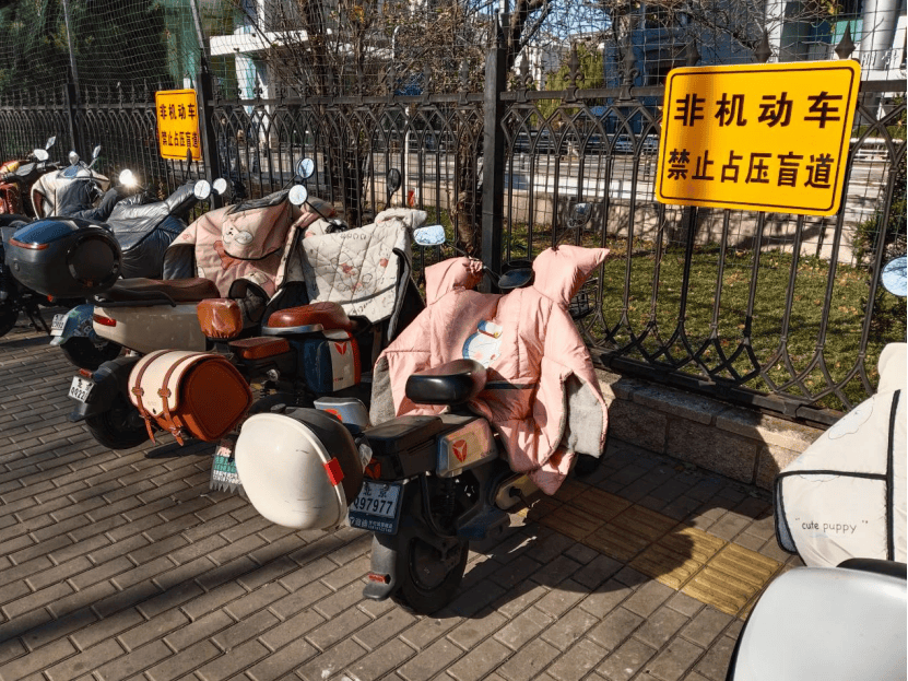 最常见的就是车辆占道,为了自己方便停车,不管是共享单车、电动车,还是私家车,都爱往盲道上停。尤其在早晚高峰期,一排车直接把盲道堵死,视障朋友根本没法走。