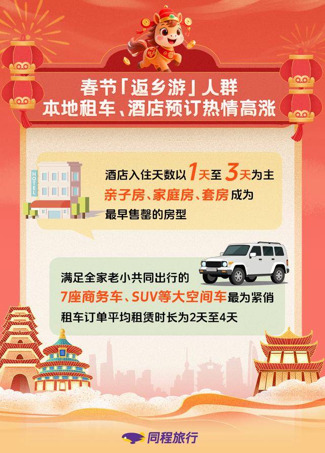 同程旅行研究院认为,“返乡游”热潮的强势崛起,成为拉动春节文旅消费的一股新兴力量。随着返乡人群旅游需求持续释放、旅游消费观念不断升级,未来“探亲+旅游”的混合模式有望成为春节新习俗,为本地文旅市场增长注入更强活力。