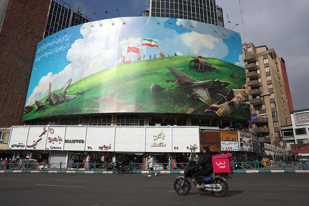 当地时间2026年2月5日,伊朗德黑兰,伊朗民众驾车经过瓦利阿斯尔广场一处新的反美广告牌。视觉中国 图