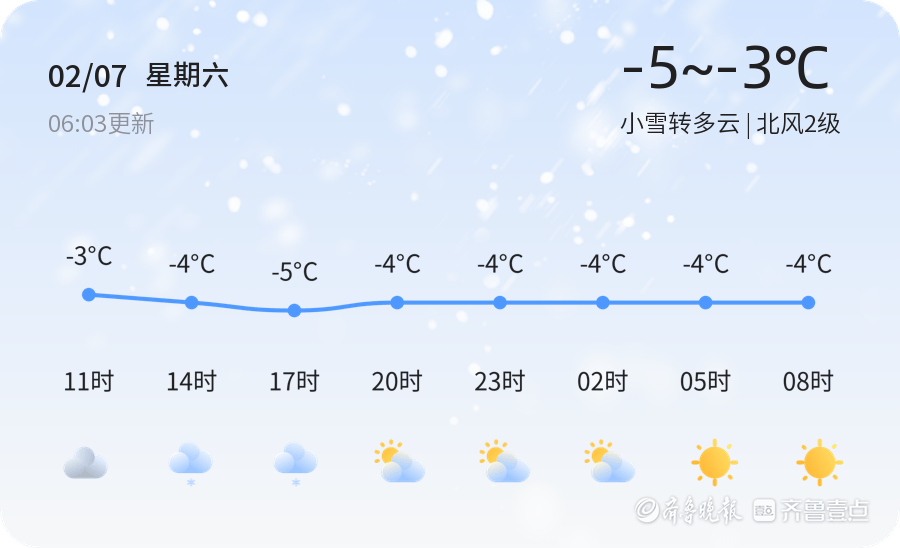 今天是2026年2月7日,星期六,农历十二月二十。烟台市迎来小雪转多云的天气,气温在-5℃到-3℃之间。北风2级,空气湿度67%,PM2.5指数为36,空气质量状况良好。市民出行时请注意防寒保暖,由于道路可能结冰,建议减速慢行,确保安全。