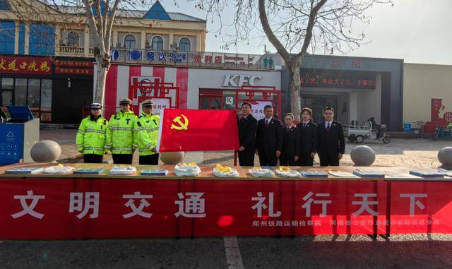 高速交警联合郑州铁路运输检察院在京港澳高速安阳服务区开展“文明交通 礼行天下”春运交通安全宣传活动。