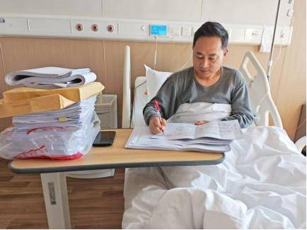 在文广超的“软磨硬泡”下,家人和同事与医生再三沟通确认,最终给他提出了工作和休息时间安排,并要求他适当投入工作,不能影响康复。就这样,文广超在医院的病床上,指导大四学生开题、帮助研究生修改论文,批改期末试卷,撰写总结和工作规划。