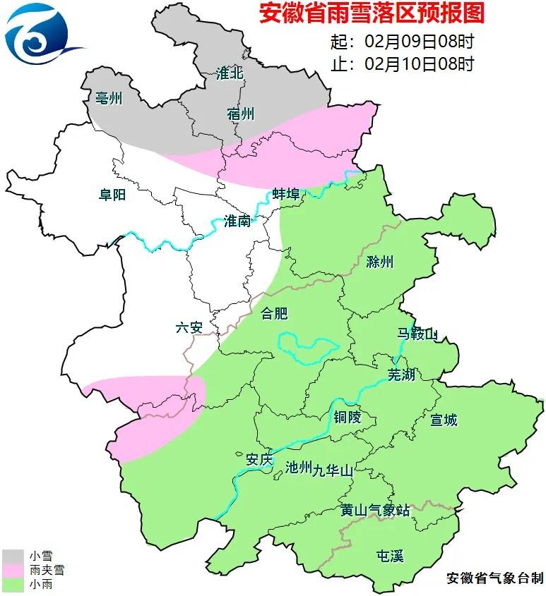 9日(周一):全省多云转阴天,淮河以北中东部有雨夹雪或小雪,淮河以南大部分地区有小雨,大别山区有雨夹雪或雪。