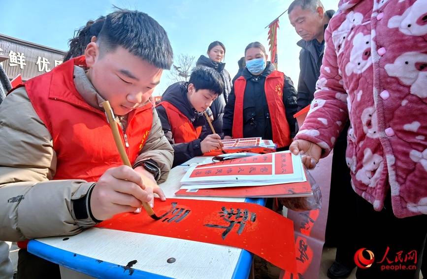 人民网郑州2月8日电 (记者尚明桢、宋芳鑫、王佩)年关将至,年味渐浓。郑州各地义写春联活动陆续开启,书法家、党员志愿者与学生同台挥毫,墨香与欢笑交织,绘就出最动人的新春图景。