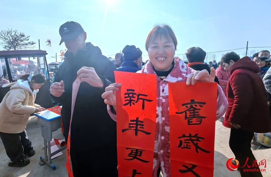 领到春联的群众喜笑颜开。人民网记者 王佩摄