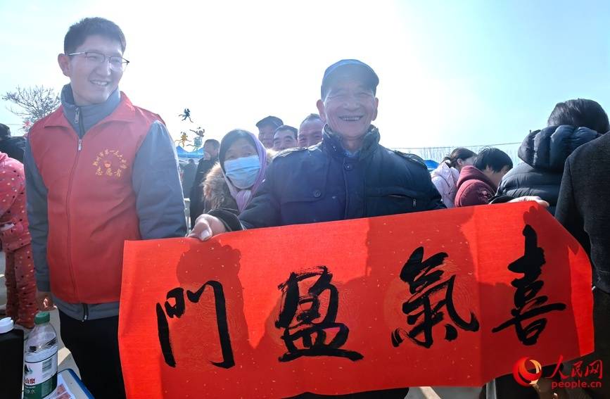 领到春联的群众喜笑颜开。人民网记者 尚明桢摄