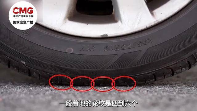 轮胎简单自检方式:正常胎压时,一般着地的花纹是4~6个;大于6个则胎压不足,小于4个胎压过高。