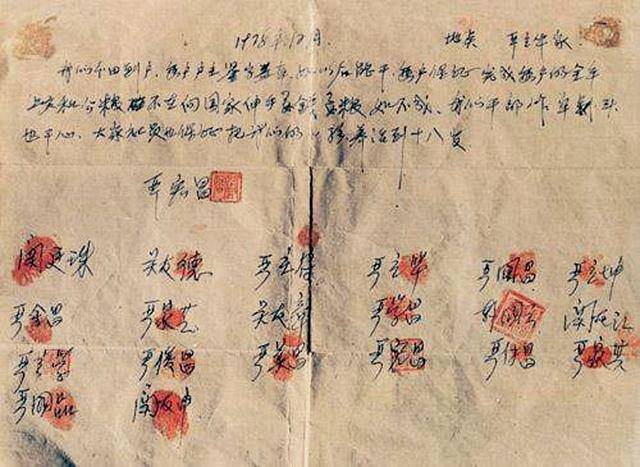 1978年春,安徽凤阳小岗村18户农民私下签订的“生死状”。(资料图)