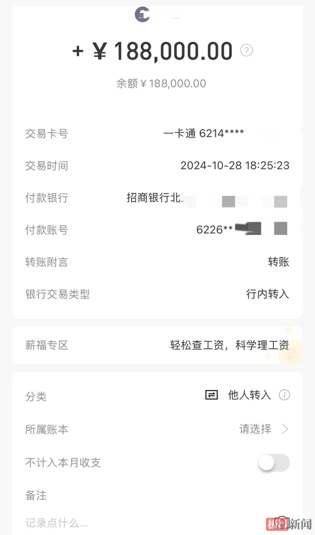 余涛的转账记录(受访者 供图)
