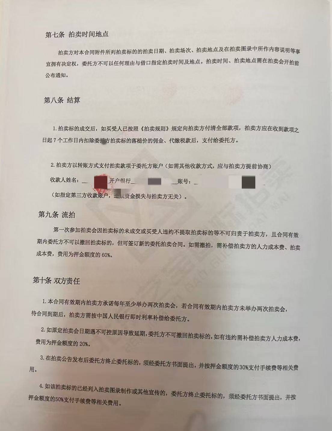 随后,“陈总监”的助理呈上一份《委托拍卖合同》。据该合同,沈红军需向拍卖行指定账户支付二十万元“履约保证金”。若拍品成交,保证金返还,拍卖公司从中抽取8%的佣金;若未成交,则委托方需同意拍品自动顺延至后续拍卖,且在此期间不得单方撤回;若执意撤拍,则需承担前期服务成本,保证金将部分扣除。
