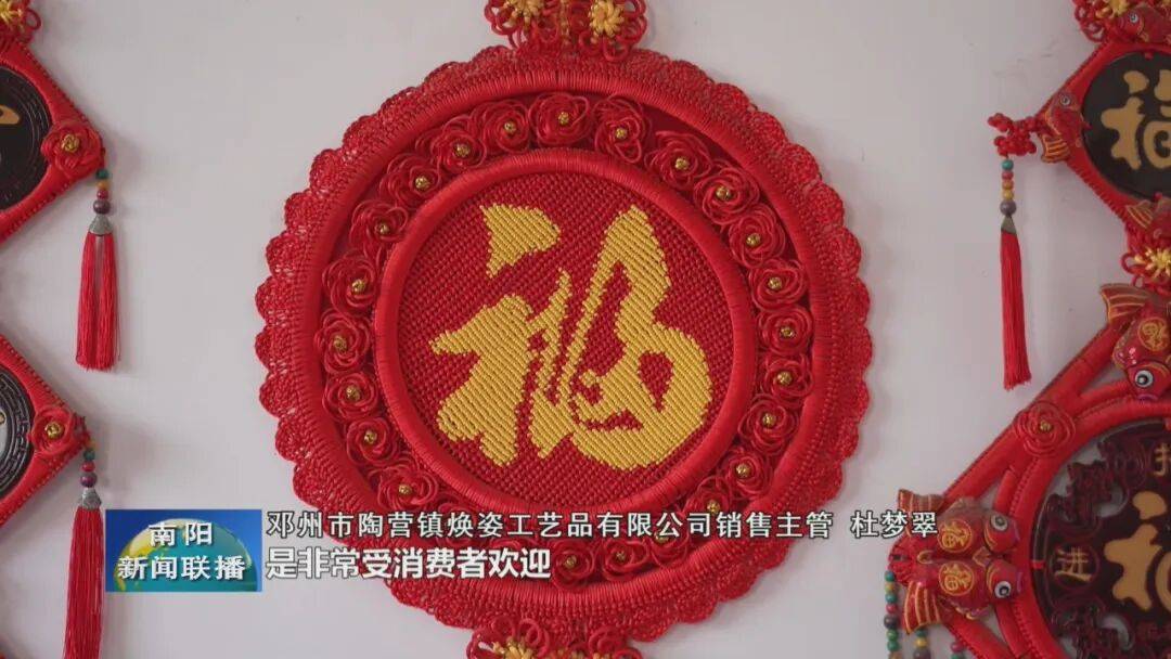 邓州陶营镇王良村的工艺品生产基地里,村民们正加紧制作“福到我家”系列中国结,切布、制绳、编织、打包各道工序井然有序。今年基地创新推出生肖结、莲花结等新品,搭配传统福字结、双鱼结,通过电商直播、独家代理等模式拓宽销路,与全国多家电商企业达成合作,订单量持续攀升。