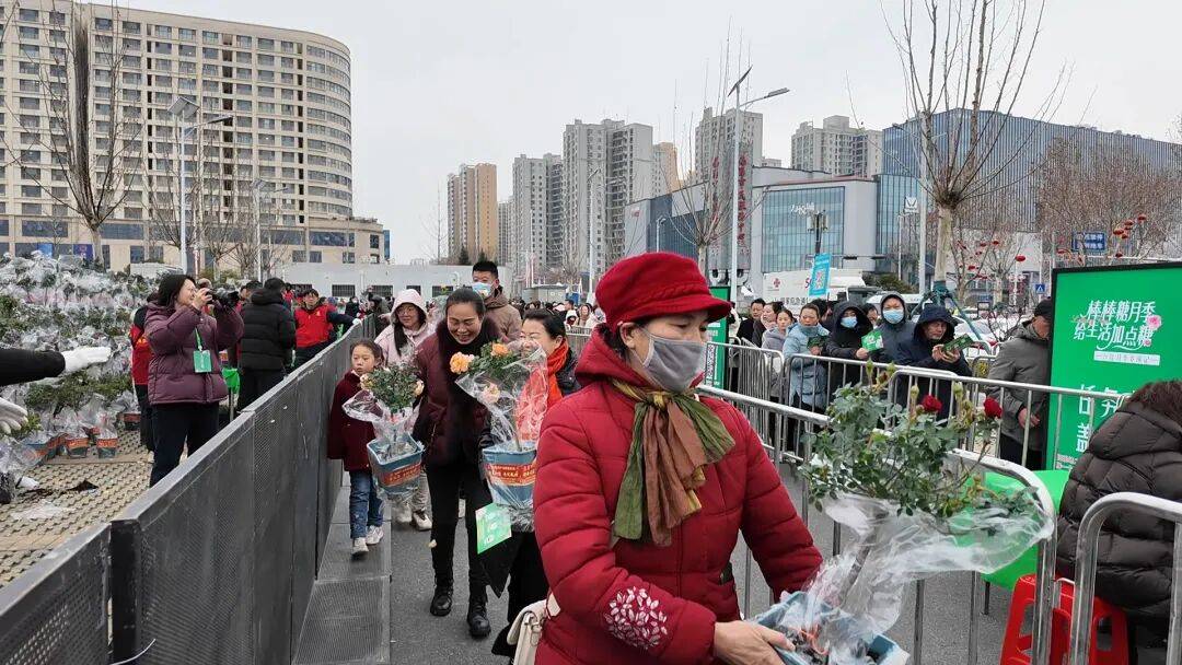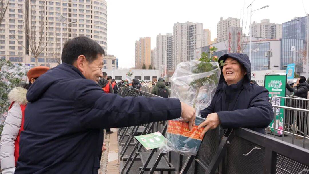 当天上午,活动现场人头攒动、气氛热烈,不少市民闻讯而来、早早排队,争相领取象征美好与吉祥的棒棒糖月季。寒冬时节,朵朵月季迎风绽放、色彩艳丽,打破了季节限制,为即将到来的新春佳节增添了别样生机与喜庆氛围,成为街头一道温暖靓丽的风景线。