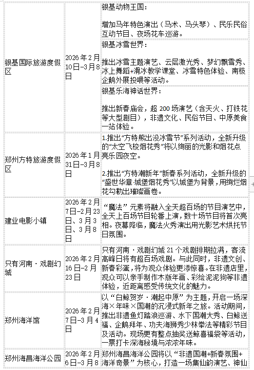 2月8日,河南省文化和旅游厅整合发布2026河南新春游玩指南出炉,涉及郑州、洛阳、开封、南阳等18地。