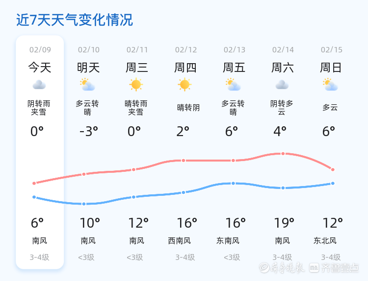 今天是2月9日,星期一,农历十二月廿二。济宁市今日天气阴转雨夹雪,气温在0℃至6℃之间,东南风2级,相对湿度为58%,PM2.5指数为64,空气质量良好。各区天气情况基本一致,市民出行请注意携带雨具,防范雨雪天气带来的不便。 明日天气将转为多云到晴,气温有所回升,预计在-3℃至10℃之间,南风风力较小,小于3级,空气质量继续保持良好。与今日相比,明日天气晴朗,适合户外活动,但早晚温差较大,市民需注意保暖。 未来三天,济宁市天气趋势波动较大。周三将有雨夹雪天气,气温在0℃至12℃之间;周四天气晴转阴,气温略有下降,风力增强;周五则以多云转晴为主,气温回升。市民需根据天气变化及时调整衣物,尤其是雨雪天气,路面湿滑,出行请注意安全。 温馨提示