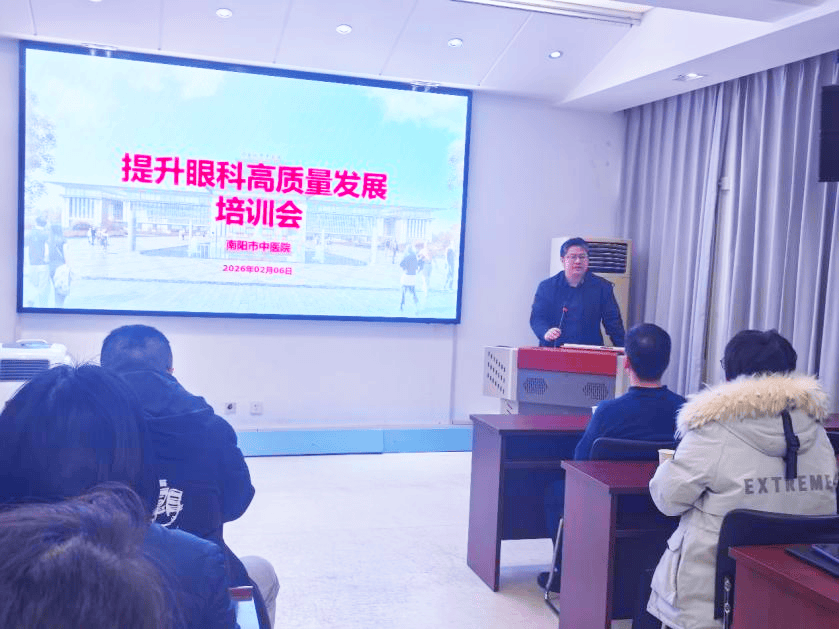 为深入推进国家区域医疗中心建设,补齐眼科发展短板、强化专科核心竞争力,2026年2月6日,中国中医科学院望京医院南阳医院(南阳市中医院)在门诊楼四楼会议室成功举办”提升眼科高质量发展专题培训会”。会议特邀中国中医科学院望京医院眼科周尚昆主任莅临指导授课,南阳市中医院院领导、眼科全体医护人员、各科室科主任、护士长及望京专家派驻专家团队参会,会议由医务科副科长李贺琦主持。