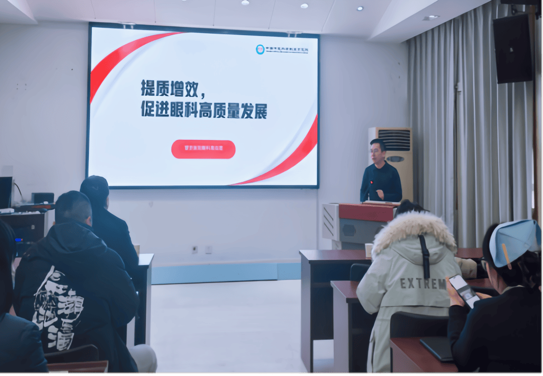 讲座结束后,银河副院长对会议进行总结。他高度评价了周尚昆主任的授课内容,认为此次讲座既立足理论前沿,又贴合临床实际,具有极强的实践指导意义,对眼科未来的高质量发展具有重要启发。银河副院长要求,眼科全体医护人员要将“提质增效”的理念深度融入日常工作,把此次培训所学知识、先进经验切实转化为临床实践与科室管理的具体行动,不断提升医疗服务能力与患者满意度,扎实推动眼科专科内涵式发展。