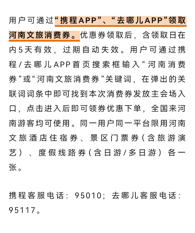 “携程APP”、“去哪儿APP”消费券发放使用规则