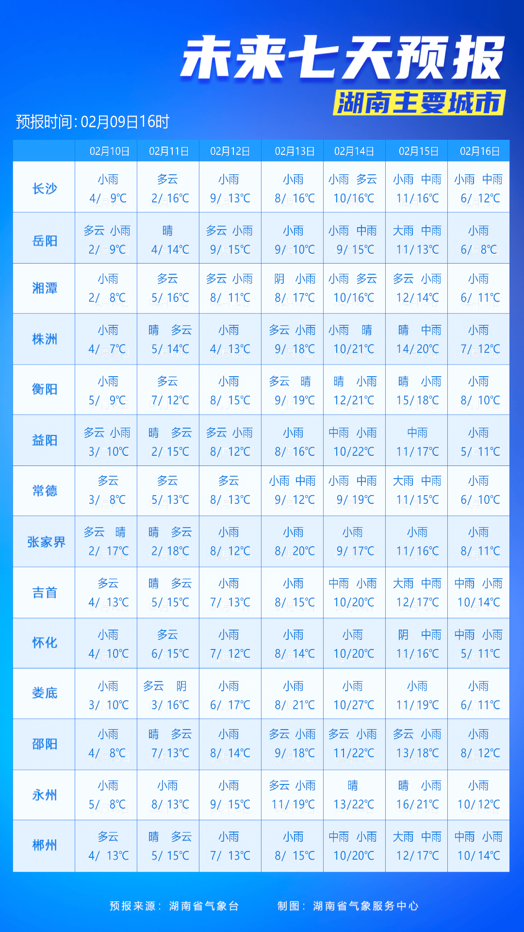 湖南主要城市未来7天预报