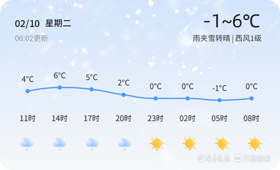 今日是2月10日,农历十二月廿三,东营市迎来雨夹雪转晴天气。今日气温范围为-1℃至6℃,目前气温为2.2℃,风向为西风1级,空气湿度较高,达到84%。空气质量方面,PM2.5浓度为50,属于良好水平。今日的雨夹雪天气可能导致道路湿滑,市民出行时请注意交通安全,建议携带雨具,减速慢行,尤其是早晨和夜间气温较低,需注意保暖。
