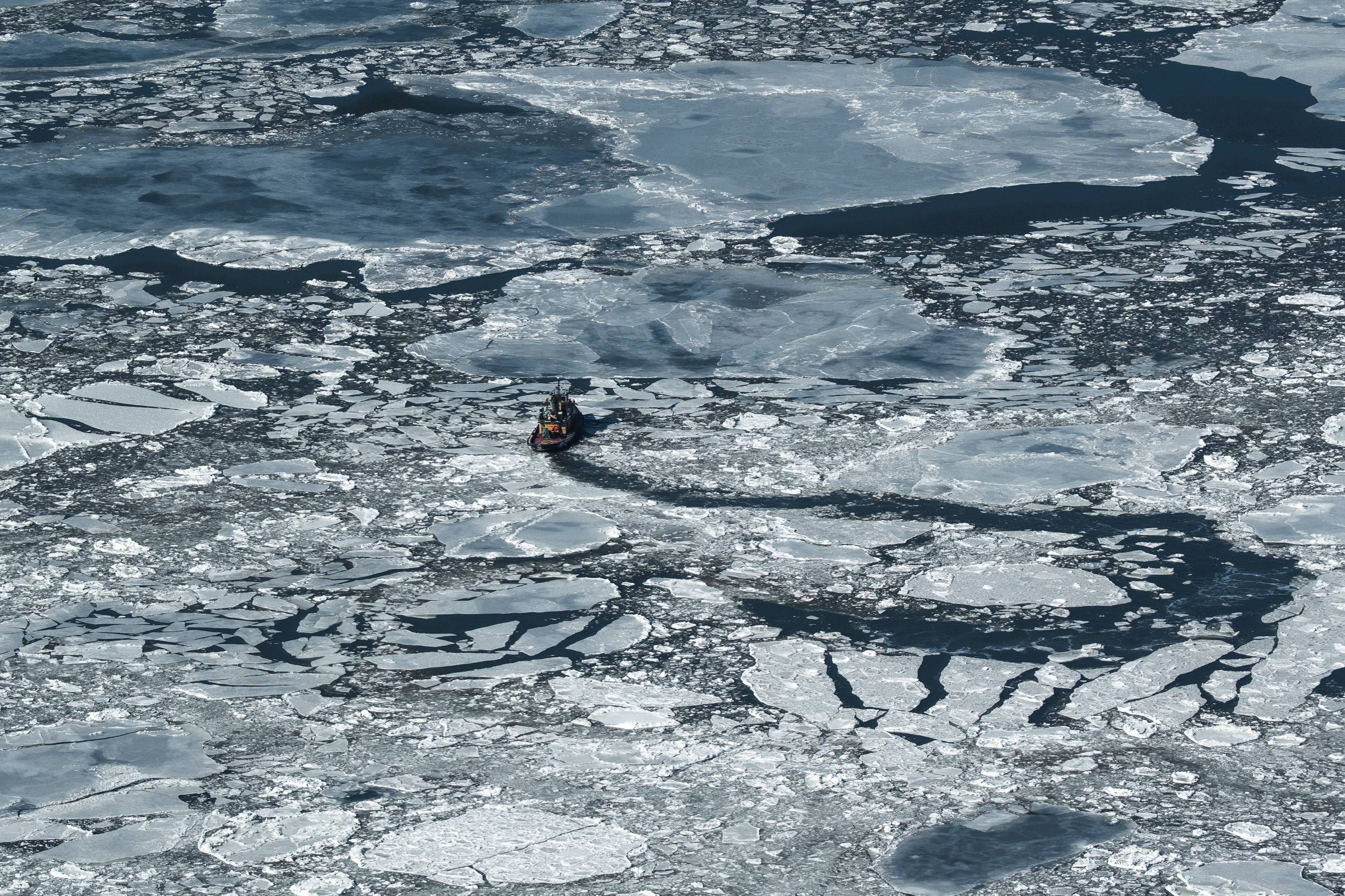 2月9日,一艘拖船在美国纽约哈得孙河破冰前行。 新华社/欧新