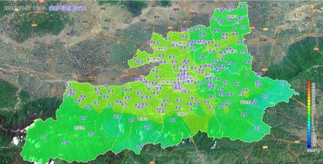 ▲16时西安市气温实况色斑图