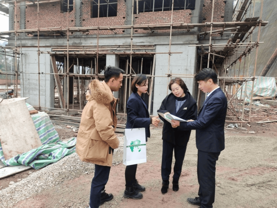 图:工作人员走访种植大棚,为乡村振兴路上的奋斗者增添安心保障
