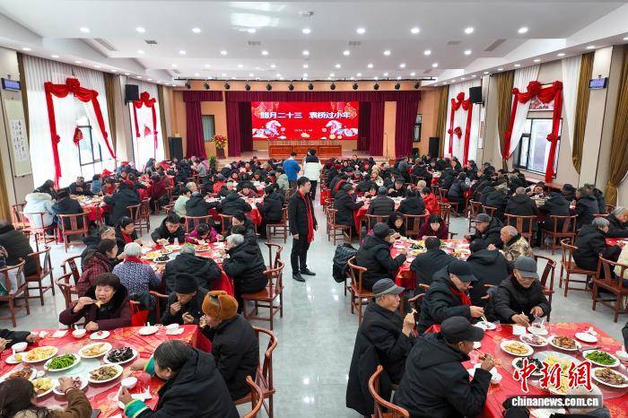 图为老人们乐享小年团圆家宴。中新社记者 李超庆 摄