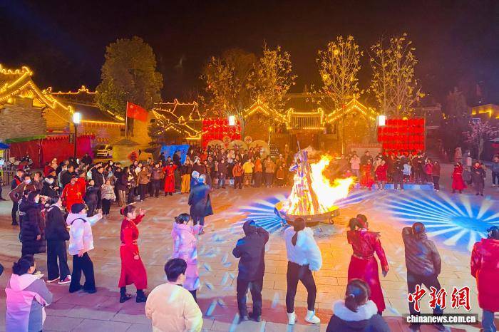 图为游客乐享篝火晚会。中新社发 刘杨迪 摄