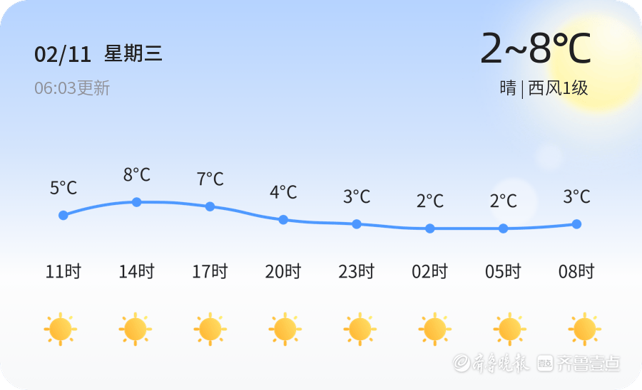 今天是2月11日,农历十二月廿四,潍坊迎来晴好天气。目前气温为-1.6℃,西风1级,空气湿度为95%,PM2.5浓度为188,空气质量为中度污染。市民出行时建议佩戴口罩,减少户外活动时间。未来几小时内,天气持续晴朗,气温逐渐回升,市民可适当调整着装,注意保暖。