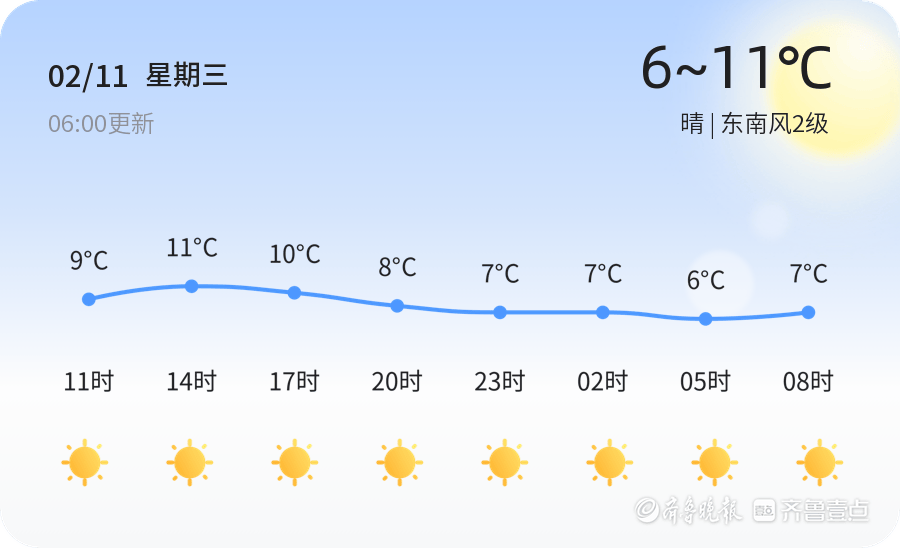 今天是2月11日,农历十二月廿四,济南天气晴朗,气温适宜,目前温度为-0.6℃,东南风2级,空气湿度为75%。PM2.5浓度为127,属于中度污染,建议市民减少户外活动,特别是敏感人群需做好防护措施。今天的空气质量状况为中度污染,建议市民在外出时佩戴口罩,注意防护。今天的天气情况对市民的出行影响较小,但建议市民根据天气情况适时增减衣物,保持温暖。出行时,市民应根据天气情况选择合适的衣物,并注意交通安全。
