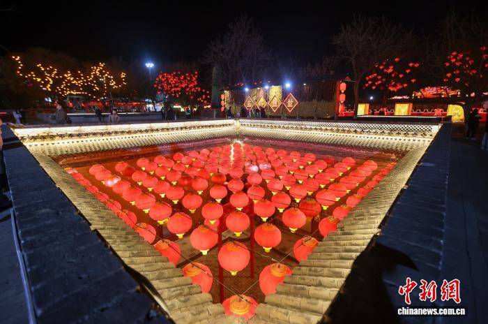 2月10日小年夜,河南三门峡第九届陕州灯会正式开启,流光溢彩的花灯将地坑院映照得绚烂夺目,吸引众多游客观看。图为红灯笼照亮陕州地坑院。孙猛 摄