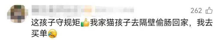 超市员工笑称,这猫很有素质了,只看不吃,也不挠人,员工和来的顾客都很喜欢它,会投喂,每种火腿肠它几乎都吃过了,只有那个辣的没敢给它吃,饭点它就会回去吃饭,吃完继续来守着,“到我们下班再离开,现在它已经成为我们的‘上班搭子’了!”