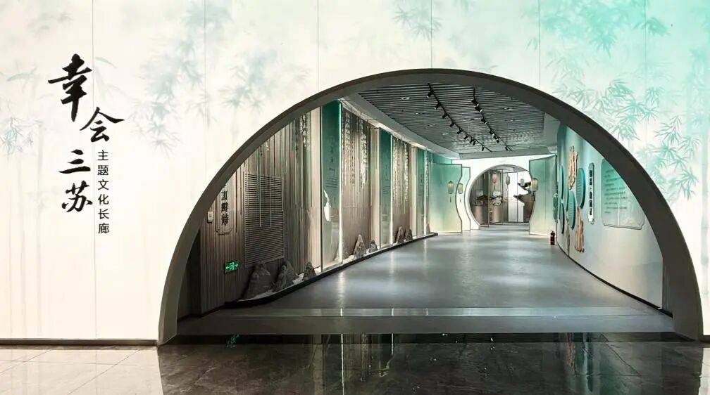 从园区人潮中穿过,喧嚣被竹影悄然筛去。三苏文化数字体验空间序厅,一条名为“幸会三苏”的主题文化长廊静静铺展。光影中,满目的竹元素让空间更显清幽雅致。东坡“可使食无肉,不可居无竹”的意趣,融于此间。