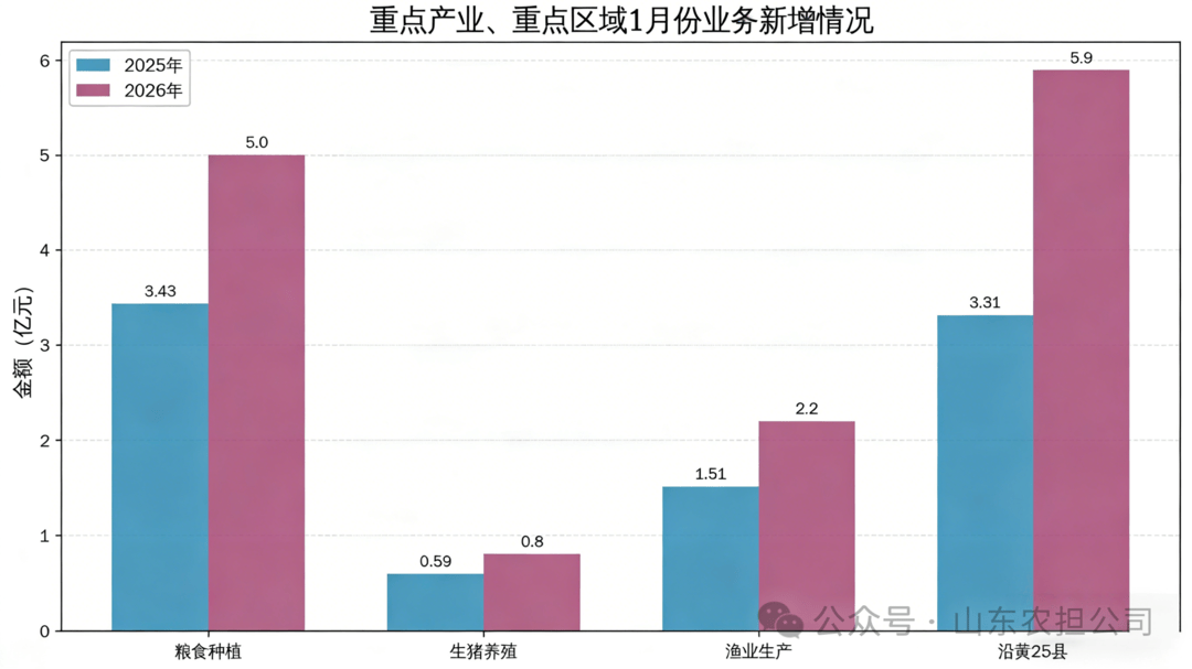 公司主动服务和积极融入“国之大者”“省之大计”,围绕重点产业、重点区域等持续深化业务结构调整。聚焦粮食安全,新增粮食种植业务金额突破5亿元,同比增长45.7%;聚焦生猪稳产保供,新增生猪养殖业务金额0.8亿元,同比增长35.2%;聚焦海洋强省战略,新增渔业生产业务金额2.2亿元,同比增长45.4%;聚焦黄河流域生态保护和高质量发展,沿黄25县新增业务金额5.9亿元,同比增长78%,农担工具的政策性效能精准释放。