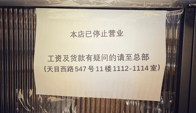 上海十多家小南国集体闭店,大门紧闭外,有的门店还贴着简单的闭店通知,“本店已停止营业,工资及贷款有疑问的请至总部”。内参君试着拨打了几个门店电话,都是无人接听的状态。