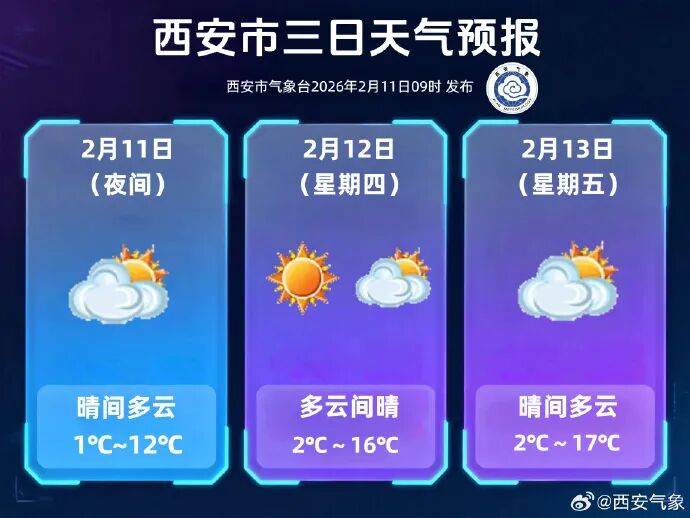 预计今天(2月11日)白天到晚上西安市以晴到多云天气为主,最高气温在13℃左右,具体预报如下: