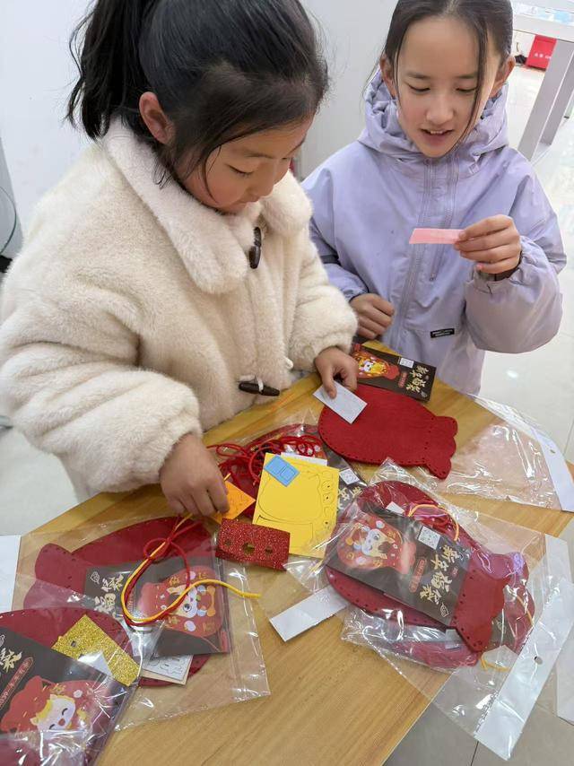 活动现场,工作人员提前准备好手工字贴等材料,爱心大使耐心讲解制作步骤,手把手指导大家完成作品。大家认真裁剪、细心粘贴,互相交流技巧,现场气氛轻松热闹。老人与孩子默契配合,一件件精致的手工挂件、喜庆福袋、创意小摆件陆续完成,每一件都饱含心意与年味。