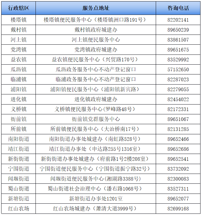 附:各镇街农村不动产登记便民服务点地址一览表