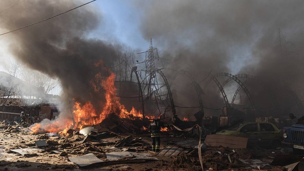 当地时间2026年2月10日,顿涅茨克地区斯洛维扬斯克,俄罗斯空袭后城市损毁的景象。视觉中国 图