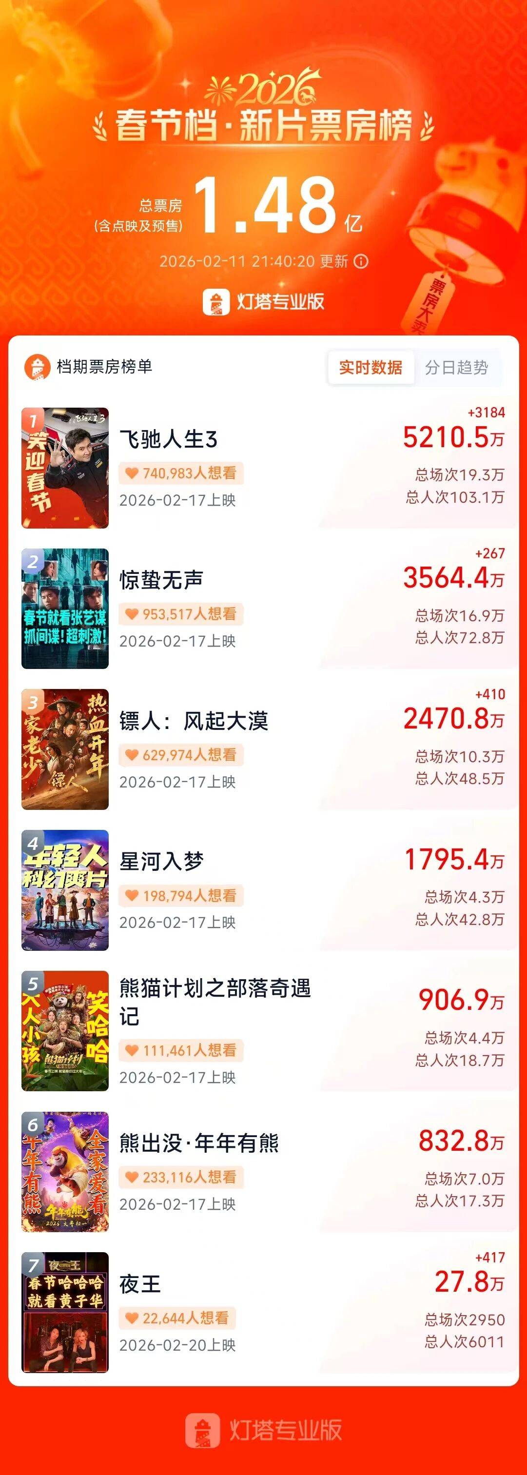 要说弱在哪里,可能是相比2025年春节档,今年春节档热门系列的续作占比不高,也因此,无论多大的阵容、多大的投资,除了《飞驰人生3》和《熊出没·年年有熊》外,都不能确保稳固的观众基本盘。