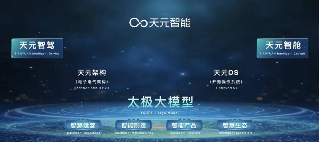 2025年,东风发布“天元智能”技术品牌,提出“一核双基双元”智能化技术体系。其中,“一核”是企业级太极大模型,“双基”是天元架构、天元OS,“双元”则指天元智驾和天元智舱。