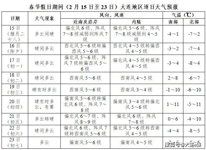 沿海偏南风5到6级,大连市各县市区偏南风3到4级增强到4到5级。