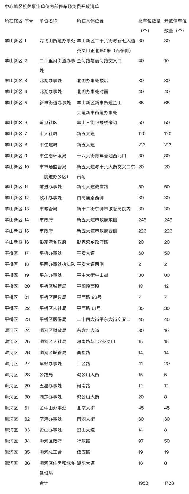 信阳市中心城区机关事业单位内部停车场免费开放清单:
