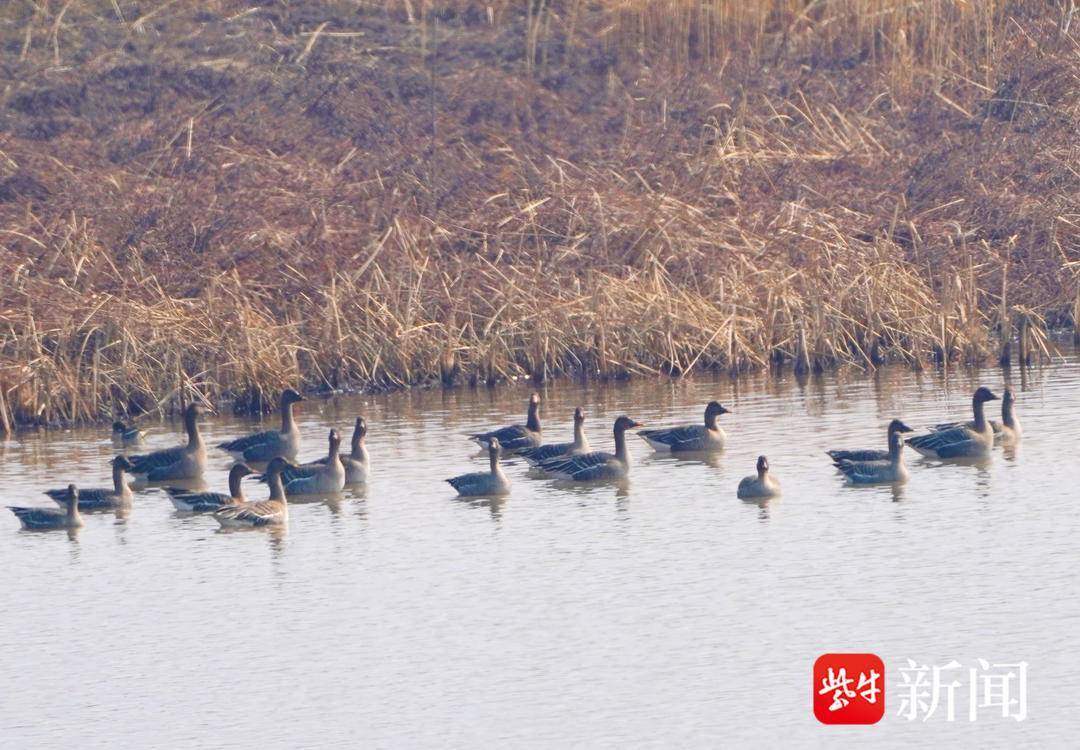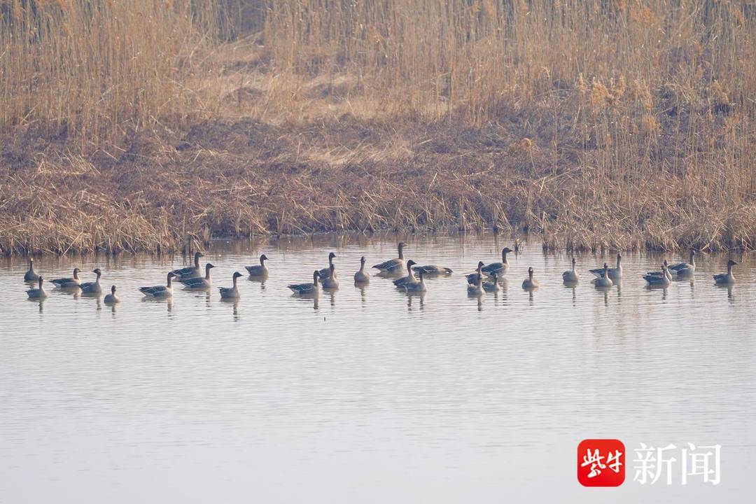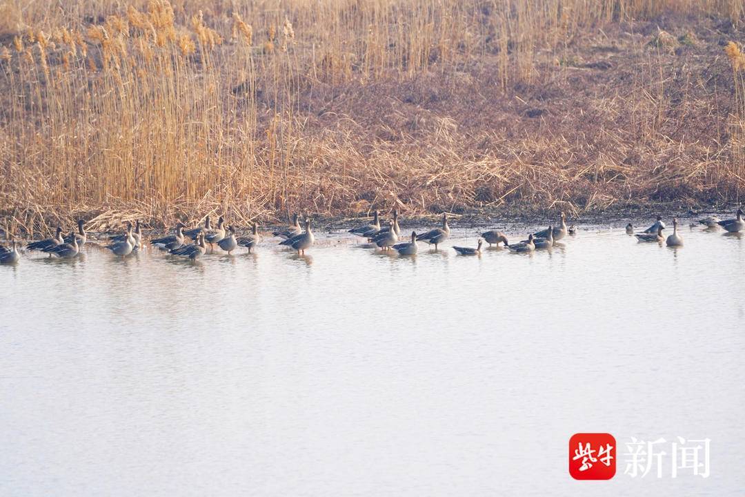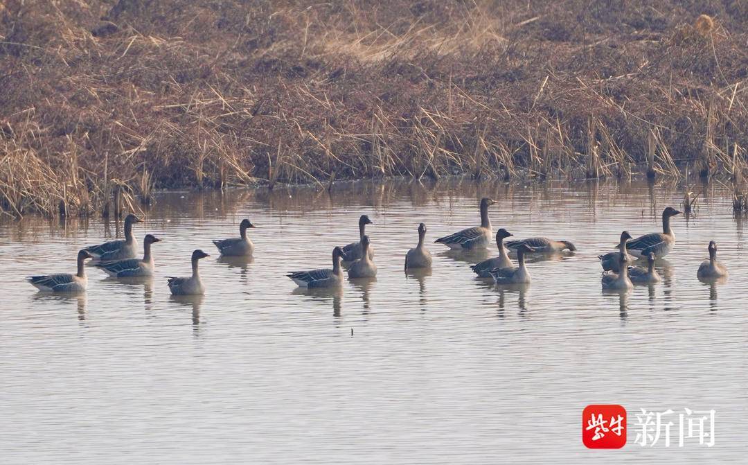 图为栖息在六合湿地的成群大雁