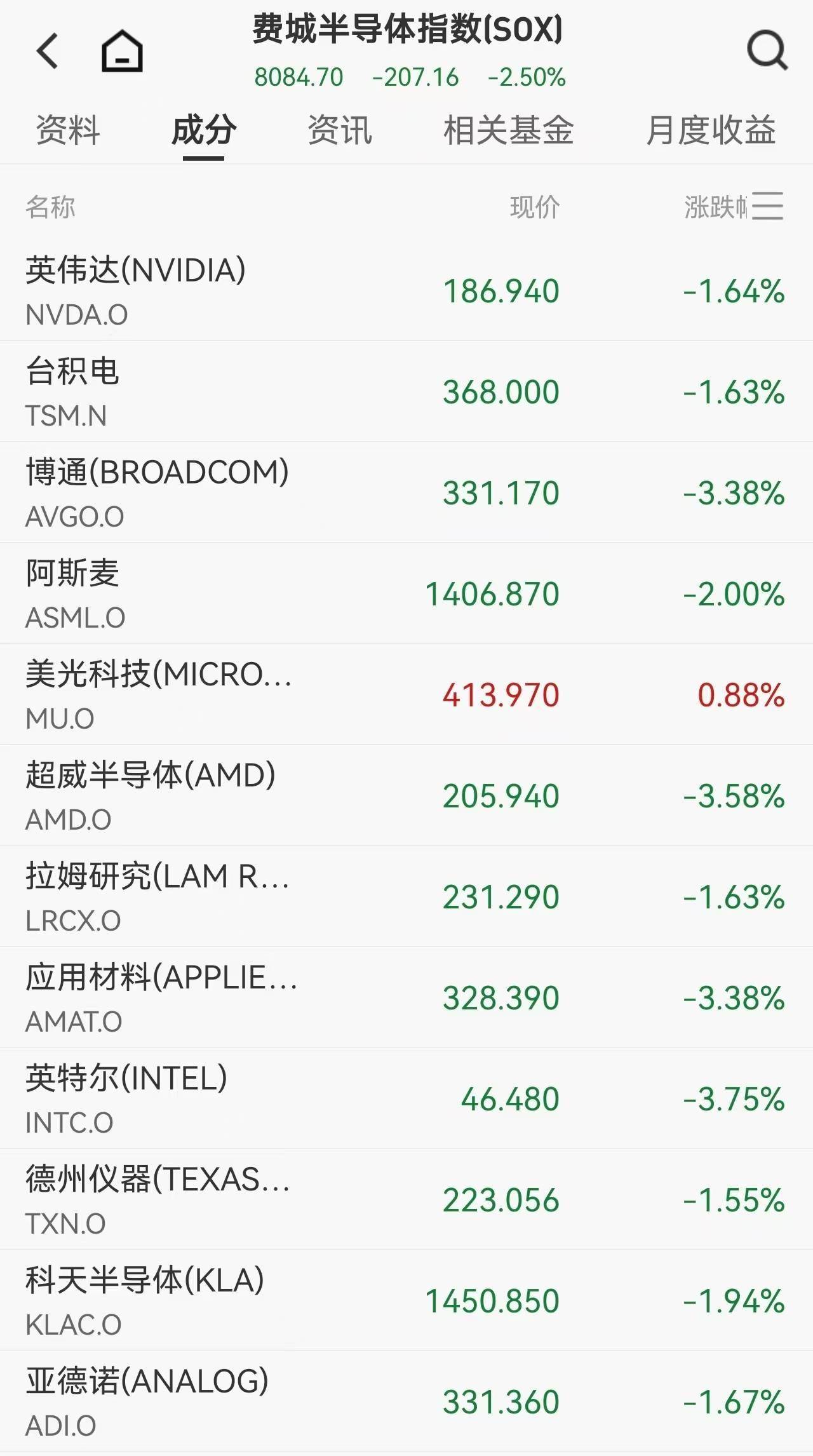 芯片股普遍受挫,费城半导体指数下跌2.50%。成分股中ASTERA LABS跌近12%,英特尔、超威半导体、博通等跌超3%。思科大跌12%,其季度毛利率低于预期,被视为传统科技企业在AI浪潮中承压的信号。