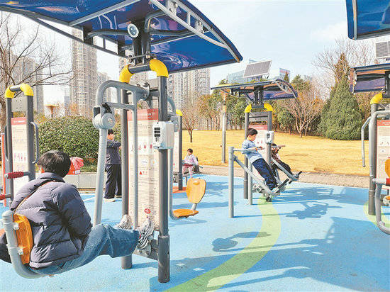 郑州街头的室外智能健身设施。2026年,河南将持续强化资金保障,计划从省级部门留用体彩公益金中安排1.35亿元,用于建设多功能运动场、智能健身驿站等小型健身设施。河南日报全媒体记者 黄晖 摄