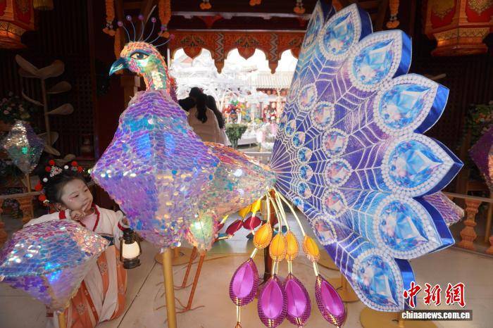 图为东南亚风格的孔雀花灯。中新社记者 韩章云 摄
