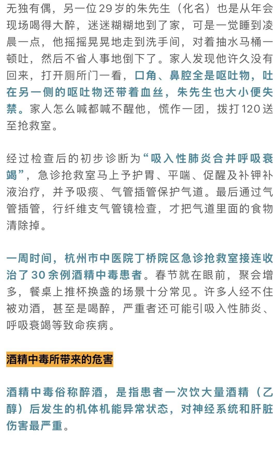 “医生救救他,救救他……喝死了可怎么向家人交代呢。”一位满脸通红的男士在杭州市中医院丁桥院区急诊抢救室哭喊,都准备下跪了。同行的还有两位带着酒气的一男一女在一旁哭泣,原来他们刚从公司年会现场拨打120送同事吴先生(化名)到医院。