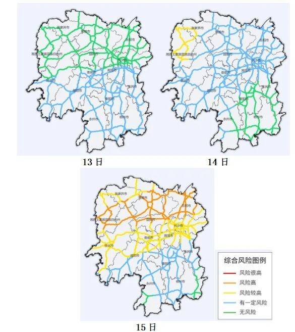 2月13日至2月15日湖南省高速公路综合风险等级图