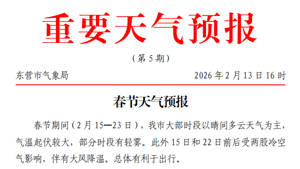 15日(廿八),晴转多云,东北风 3~4级阵风 5~6级,北部沿海海区东北风6~7级转偏西风4~5级,东部沿海海区东北风6~7级减弱至5~6级,0~5℃。